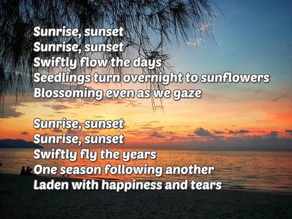 Sunrise sunset x2 swiftly flow the days.